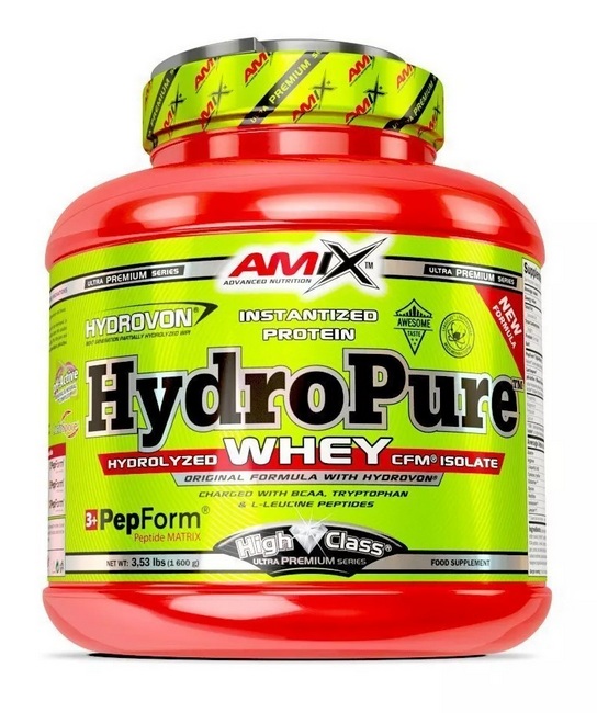 Amix HydroPure Whey Protein je špičkový protein se 100% obsahem značkové suroviny Hydrovon. Hydrovon je čistý hydrolyzovaný CFM syrovátkový izolát. Produkt je navíc obohacen o komplex peptidů PepForm, pH-Active komplexem a probiotiky LactoSpore.