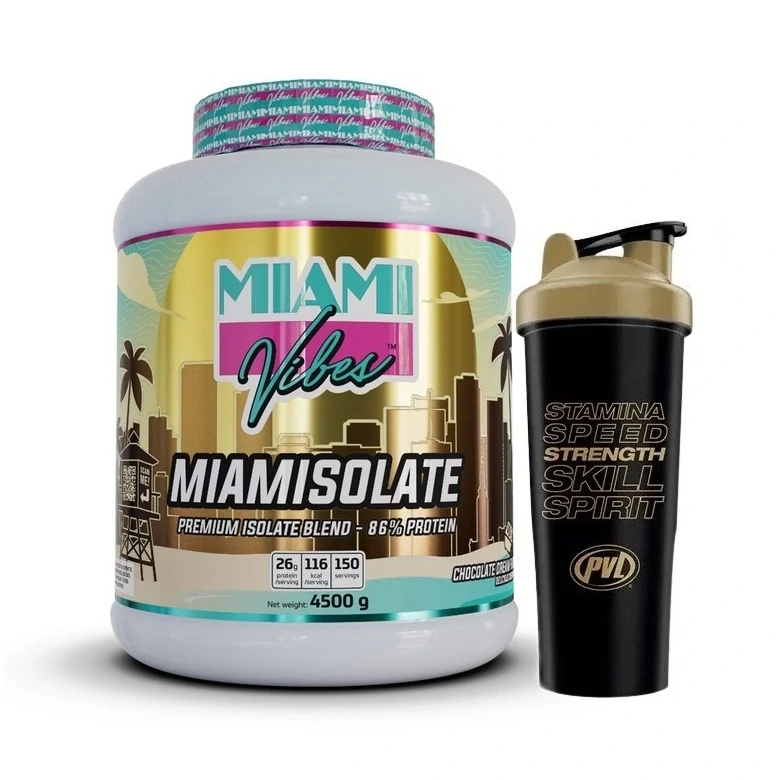 Tento protein přináší dokonalou rovnováhu mezi výživou, chutí a kvalitou, díky které se stane nepostradatelnou součástí tvé fitness rutiny. Každá dávka obsahuje 26 g vysoce kvalitního proteinu, který podporuje růst čisté svalové hmoty, regeneraci svalů po náročném tréninku a pomáhá udržet tělo v top formě. Díky kombinaci syrovátkového izolátu a hydrolyzovaného izolátu poskytuje tělu rychle vstřebatelnou bílkovinu, která dodává potřebné živiny přesně tehdy, kdy je nejvíce potřeba. Bez aspartamu, přirozeně slazený a dokonale jemný – MiamIsolate spojuje maximální čistotu složení s lahodnou, krémovou chutí, která tě přenese přímo na pláže Miami.