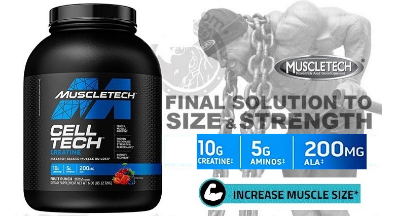 Cell-Tech obsahuje nejrychleji účinkující recepturu na bázi kreatinu a díky nanomolekulární hyperdisperzní technologii je její účinek okamžitý " Vaše svaly narostou za překvapivě krátkou dobu "