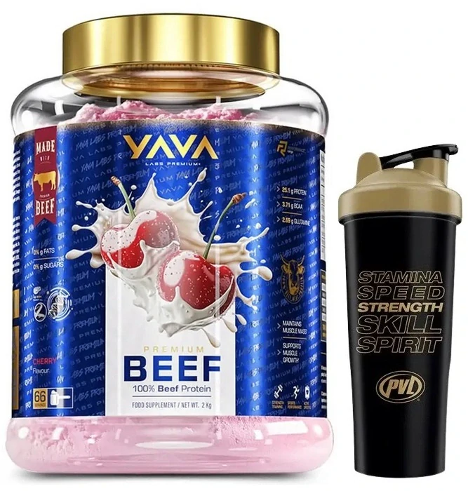 PREMIUM 100% BEEF Protein CLEAR je Prémiový hovězí protein obsahuje 25,8g hydrolyzovaného hovězího proteinu v jedné odměrce pocházející ze 100% čistého hovězího masa. S nulovým obsahem tuku, nulovým cukrem a nulovými sacharidy je to ideální volba pro budování čisté svalové hmoty. Každá z odměrek také zahrnuje přirozeně se vyskytující aminokyseliny, BCAA (3,7g) a 2,6g glutaminu pro podporu růstu a výkonu svalů.